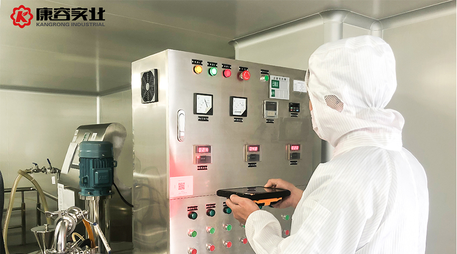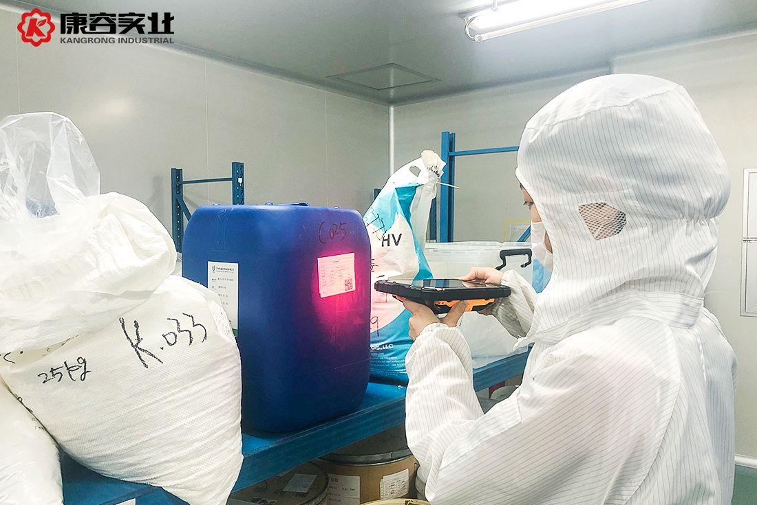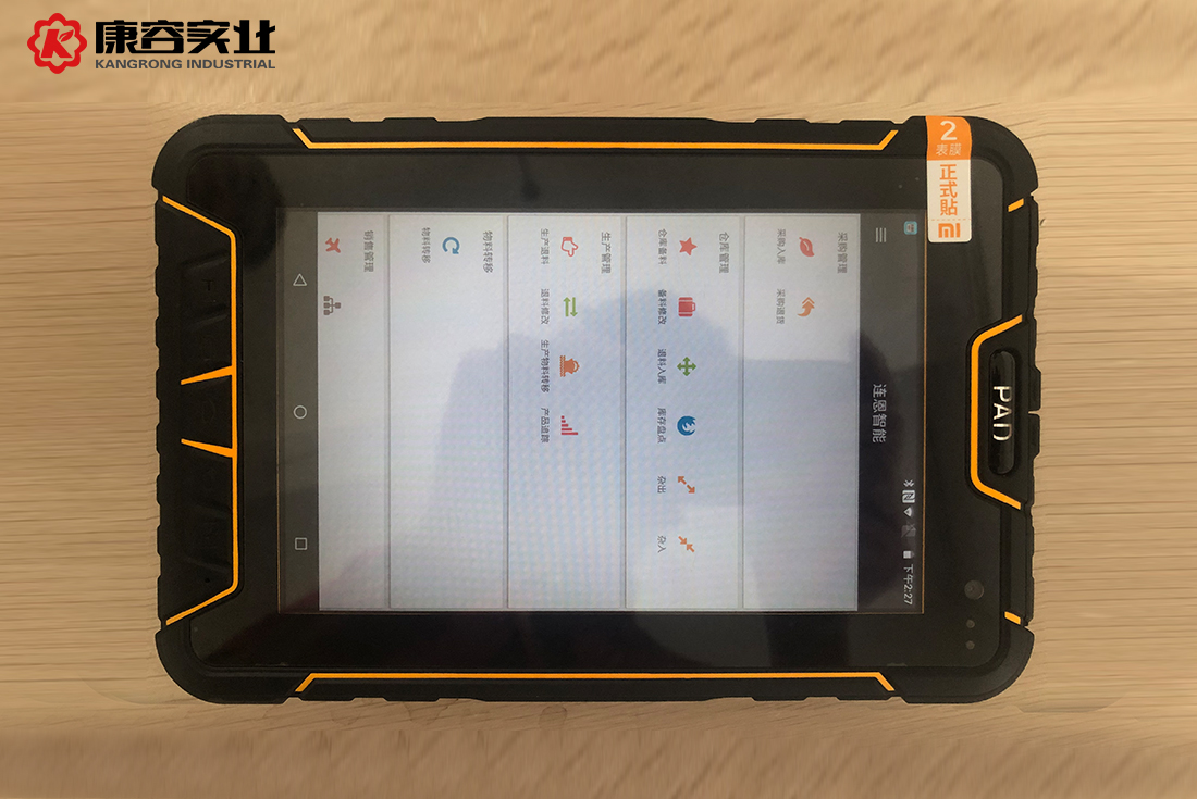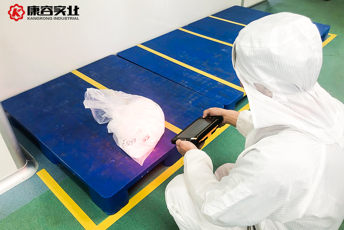 6月14日上午8點40分,康容實業(yè)乳化車間,組長李志勇走進車間后打開手中的小平板電腦,輸入個人賬號和密碼,屏幕上便顯示了生產(chǎn)任務,隨即李志勇便對原料進行投料掃描,按照小平板上顯示的原料相別投料,并根據(jù)小平板上指示的溫度、轉速等參數(shù)開始操作。以此同時,原料倉管員呂金霞也拿著小平板電腦進行原料入庫,并打印入庫二維碼標簽,隨后為明天乳化生產(chǎn)的原料進行備料準備。倉管鄺佩文也拿著小平板電腦正在進行包材入庫、打印標簽,準備明天的包材備料。