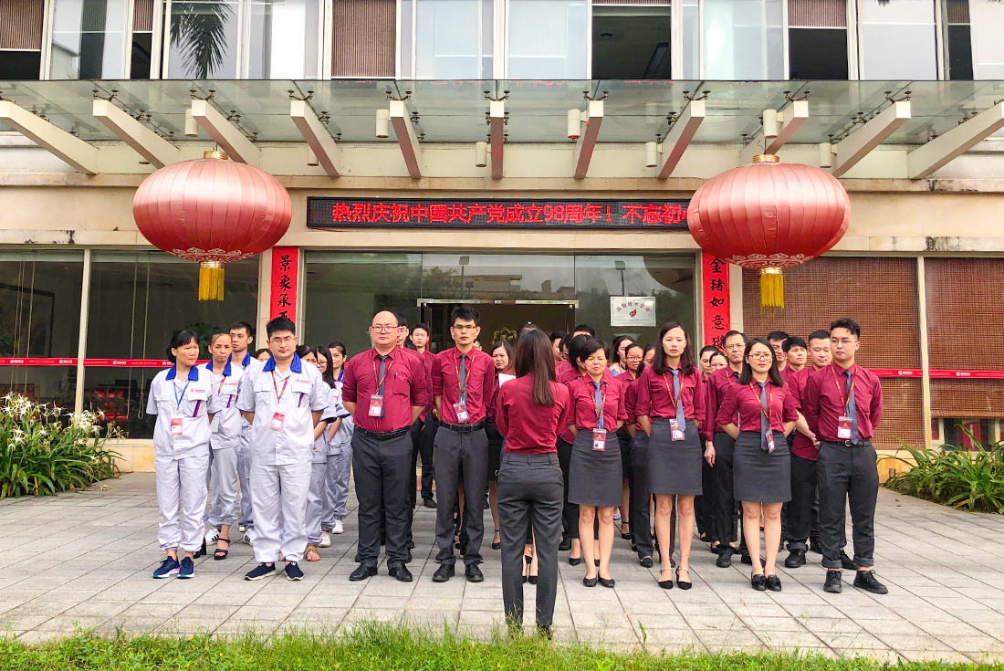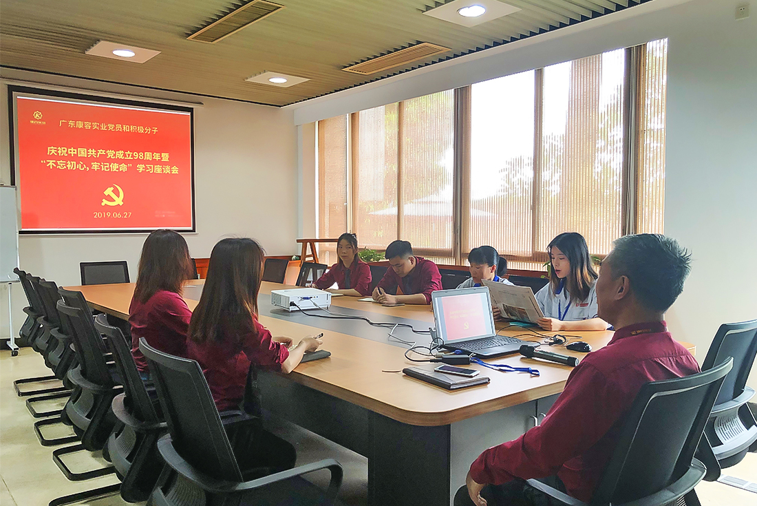 不忘初心齊繪康容騰飛宏圖,牢記使命共創華夏復興偉業。6月27日上午,在中國共產黨建黨98周年到來之際,廣東康容實業組織全體黨員、積極份子及辦公室全體人員,利用早會時間,專題學習“不忘初心,牢記使命”主題教育活動精神,莊重簡樸地慶祝中國共產黨生日。