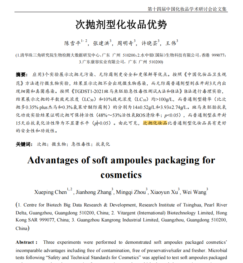 本次團體標準的發布,是繼康容實業聯合英國和歐盟注冊毒理學家、水中銀小魚親測首席技術官陳雪平博士發布學術論文《次拋劑型化妝品優勢》之后,康容在次拋化妝品研究領域取得的又一個里程碑。