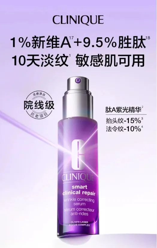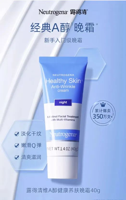 赫蓮娜黑繃帶面霜,蘊(yùn)含高達(dá)30%濃度玻色因,加速膠原蛋白、粘多糖生成,改善衰老皮膚;露得清A醇晚霜,入門級(jí)維A醇產(chǎn)品,抗皺、抗衰、抗氧化;倩碧肽A紫光瓶,「維A衍生物HPR+復(fù)配4重勝肽」 ,全鏈路抗老淡紋。
