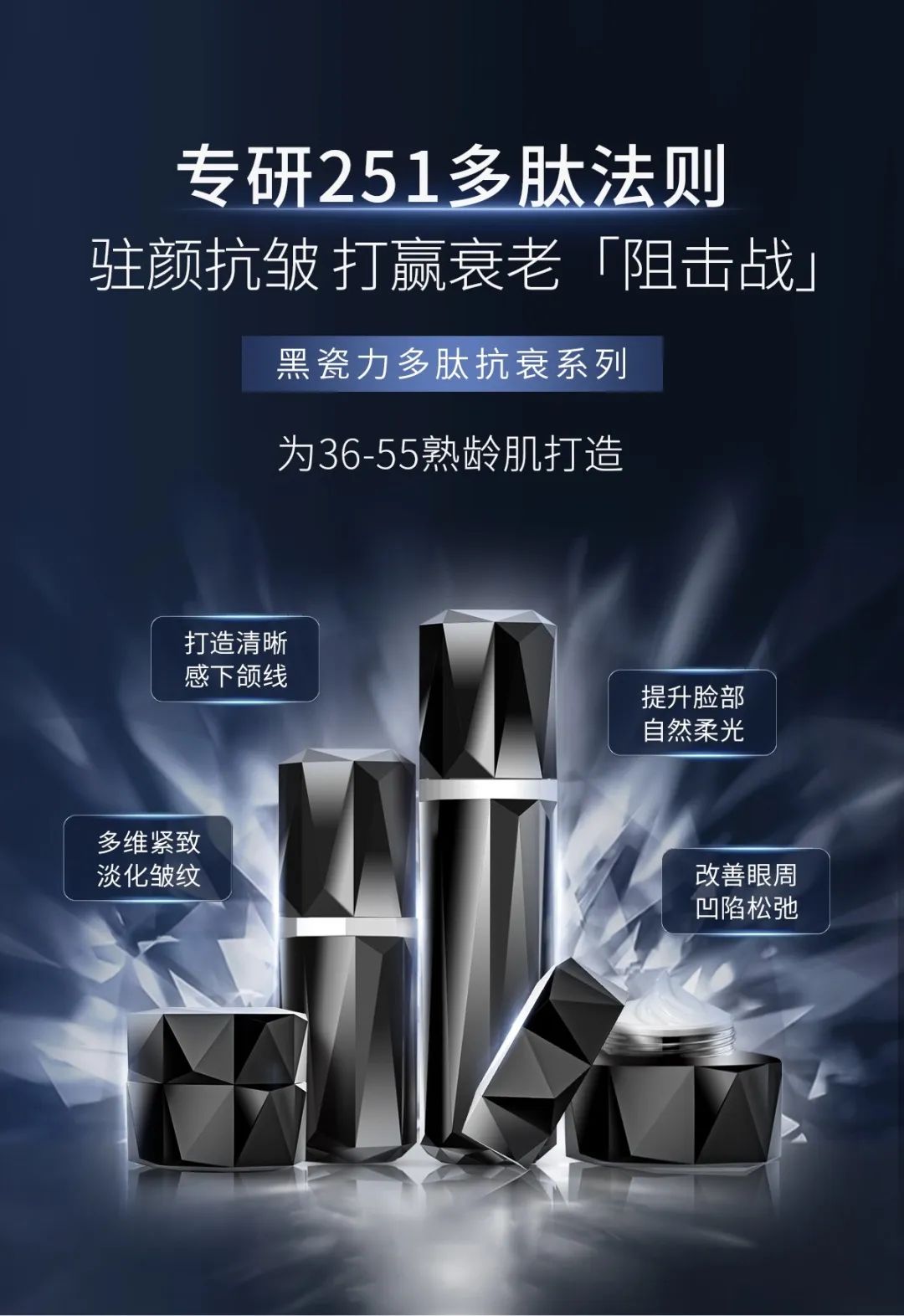 ③黑瓷力多肽抗皺系列:專研251多肽法則,實(shí)現(xiàn)肌表抗擊紋路,中層改善松弛,肌底嘭彈充盈。