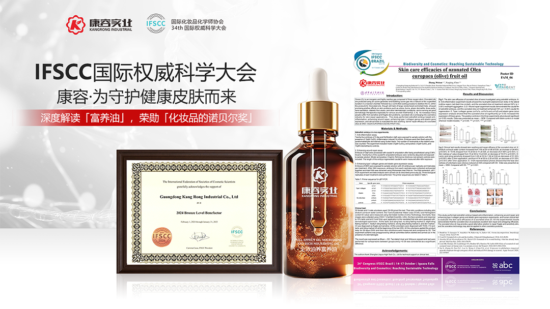 第34屆IFSCC全球化妝品科學(xué)大會(huì),康容·富養(yǎng)油大放異彩,富養(yǎng)油的開(kāi)發(fā)傳遞了植物、綠色、安全、健康、友好的理念與大會(huì)倡導(dǎo)的環(huán)保可持續(xù)發(fā)展的理念十分契合,不僅展現(xiàn)康容卓越的創(chuàng)新研發(fā)能力,更彰顯康容引領(lǐng)科技護(hù)膚新潮流的實(shí)力。