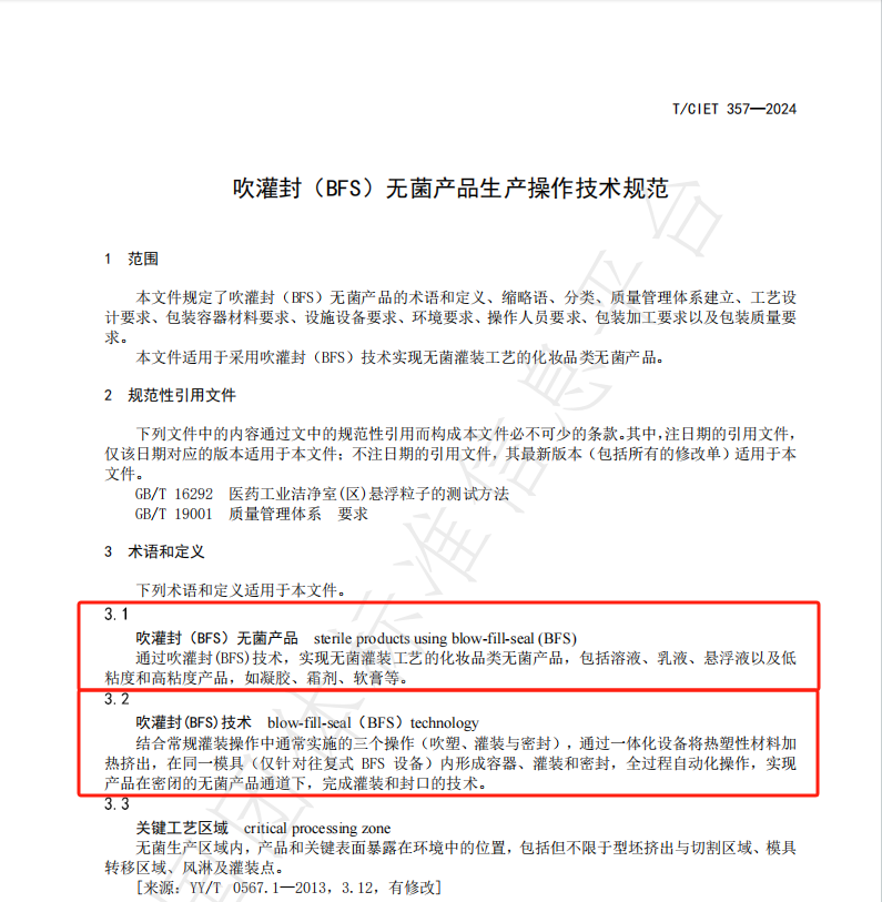 《吹灌封(BFS)無菌產(chǎn)品生產(chǎn)操作技術(shù)規(guī)范》團(tuán)體標(biāo)準(zhǔn)的發(fā)布不僅旨在規(guī)范產(chǎn)生操作,更在于科學(xué)性的要求,推動(dòng)化妝品行業(yè)不斷向前發(fā)展。
