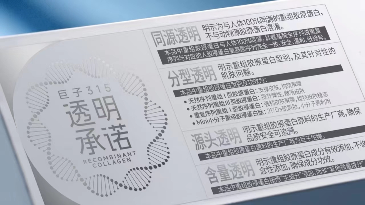 康容將繼續(xù)牽頭或助力推動(dòng)更多化妝品行業(yè)的標(biāo)準(zhǔn)體系建設(shè),引領(lǐng)行業(yè)向更安全、科學(xué)、有效的方向迭代升級。康容優(yōu)質(zhì)客戶「巨子生物」聯(lián)合新華網(wǎng)、人民健康兩大媒體以及游泳世界冠軍&可復(fù)美精華品牌大使葉詩文、資深律師劉思遠(yuǎn)、資深媒體人張淳重磅發(fā)布「315透明承諾」。巨子可復(fù)美旗下重組膠原蛋白產(chǎn)品將陸續(xù)貼上透明承諾書,通過同源透明、分型透明、源頭透明、含量透明切實(shí)保障消費(fèi)者權(quán)益,為行業(yè)立行,為消費(fèi)者立言,促進(jìn)重組膠原蛋白產(chǎn)業(yè)有序、健康發(fā)展。康容愿全力以赴助力可復(fù)美實(shí)現(xiàn)安全可追溯,以切實(shí)行動(dòng),從生產(chǎn)開始,為美麗踐行。