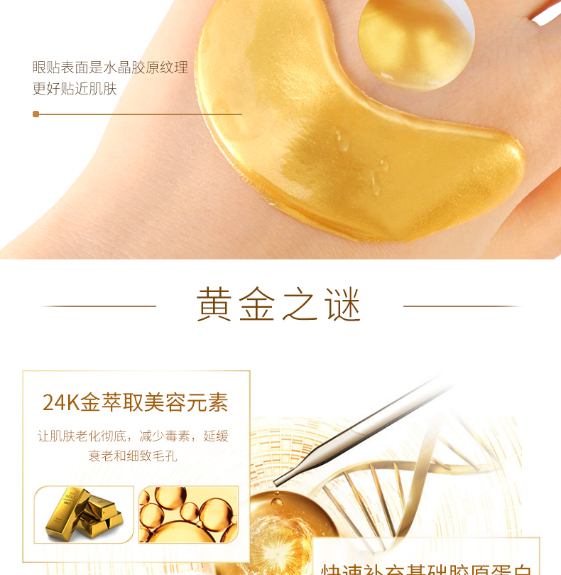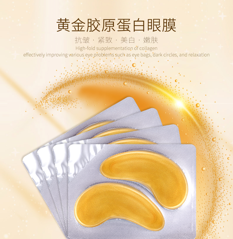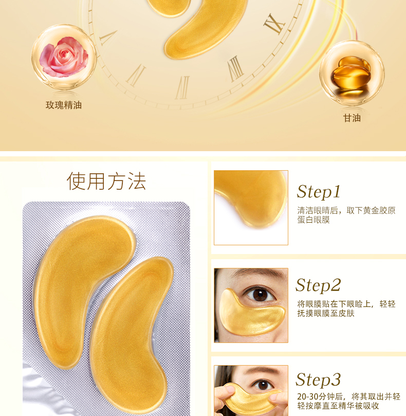 ①清潔眼睛后,取下黃金膠原蛋白眼膜