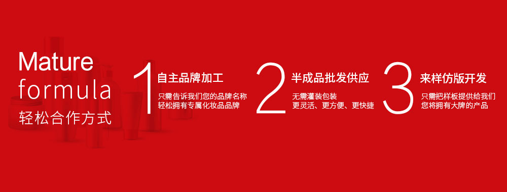 咨詢熱線:13802777831 工廠地址:廣州市白云區江高鎮神山工業園振中北路 63 號 主營業務: 化妝品 oem / 化妝品加工 / 護膚品代加工 / 面膜加工 / 次拋原液代加工 / 凍干粉加工 / 嬰童系列加工 / 套盒系列加工等