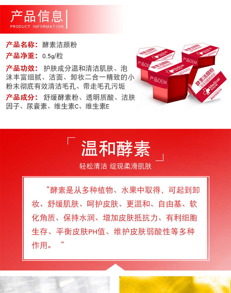 舒緩酵素粉、透明質(zhì)酸、潔膚因子、尿囊素、維生素C、維生素E