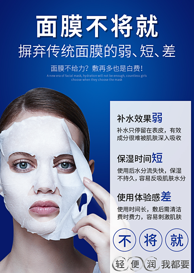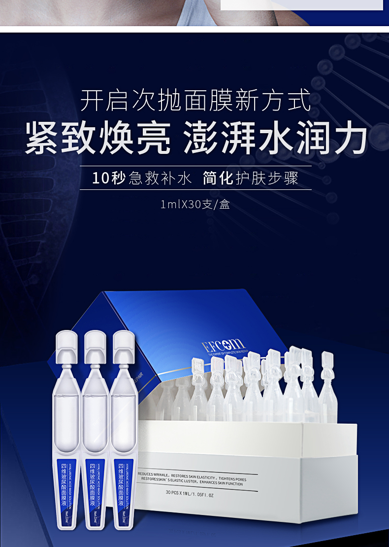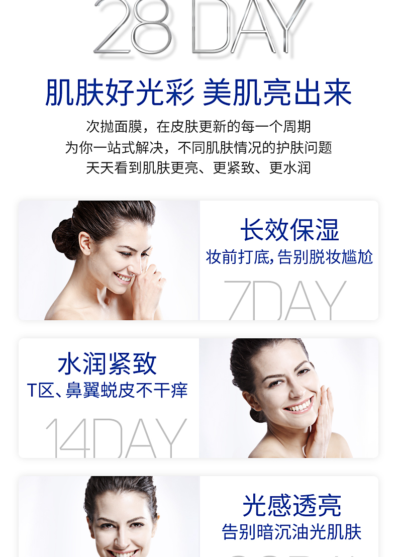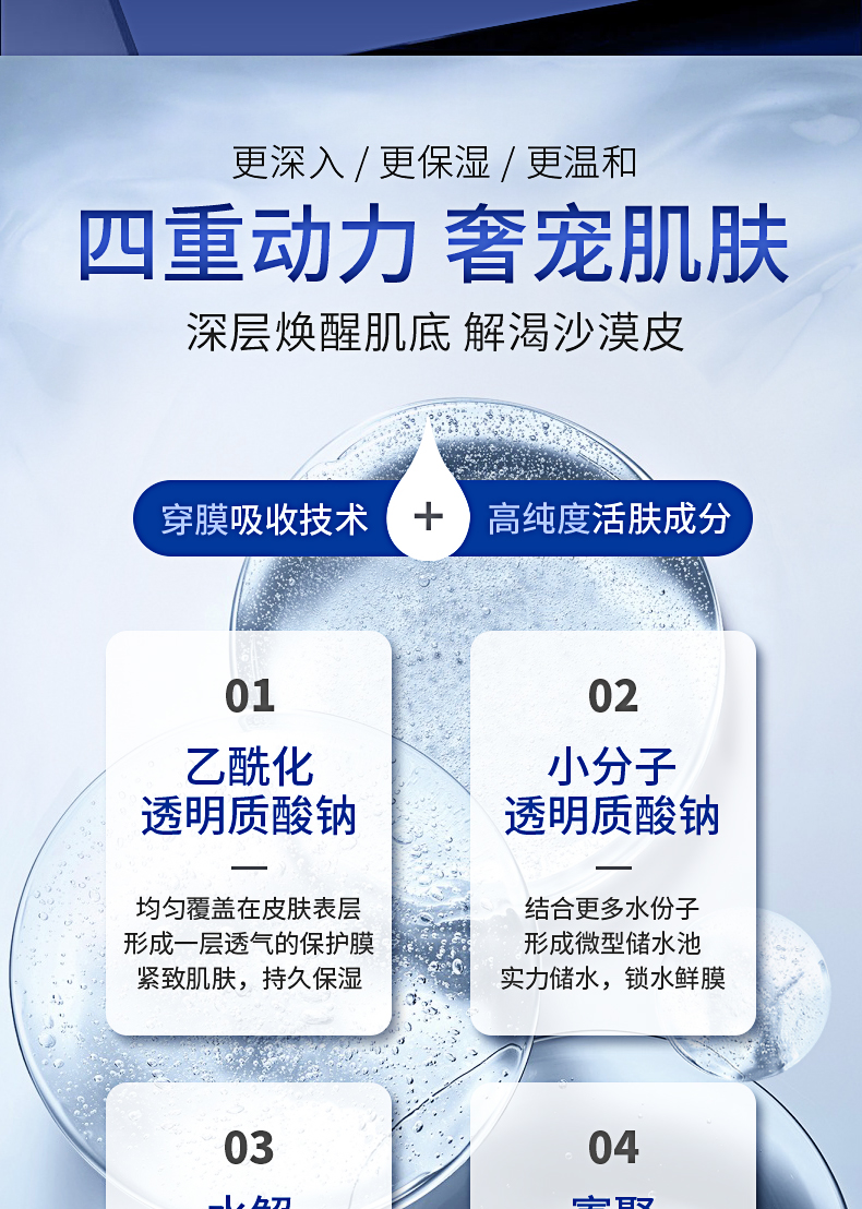 ④四維玻尿酸革新面膜,有效提高光澤度、白凈度、無暇度、水潤度