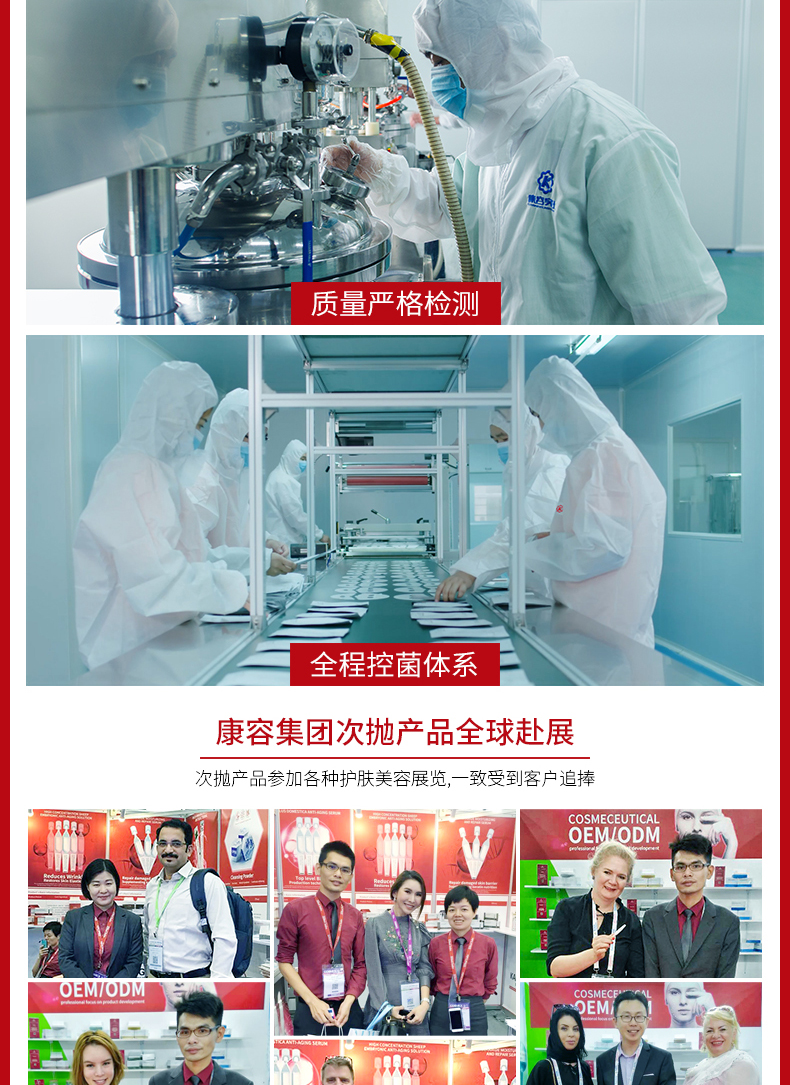③羊胚胎素細(xì)胞排列與人體的高度相似同源,具有很高的生物相容性 細(xì)胞活性較強(qiáng),含有高濃度修護(hù)表皮細(xì)胞的生長因子。