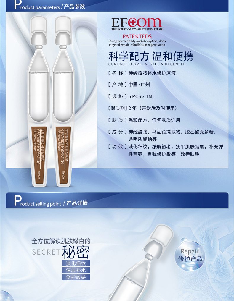 ②神經酰胺是液體黃金,天然存在人體皮膚,是皮膚的重要基石,淡化細紋,緩解初老,撫平肌膚脂層,補充彈性營養,自我修護敏感,改善膚質。