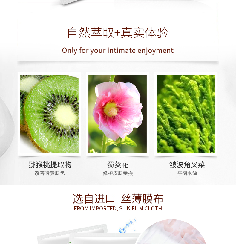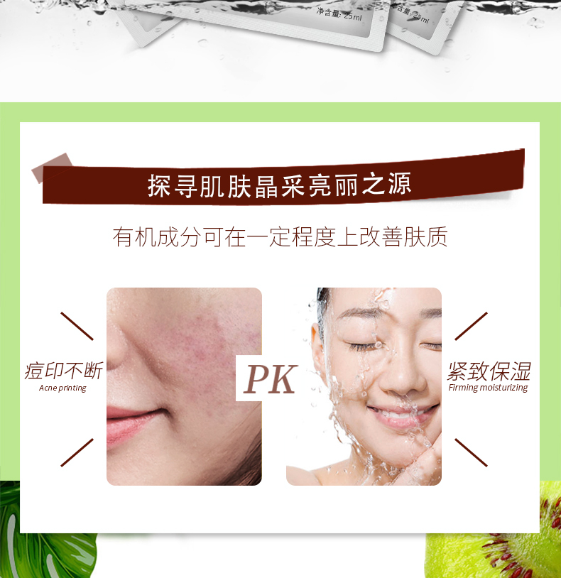 奇異果富含維生素及礦物質,豐富的維生素C,可以滿足肌膚的基本需求;改善暗沉膚質、緩解粗糙,同時為肌膚提供充足的鮮能量,亮采嫩顏。