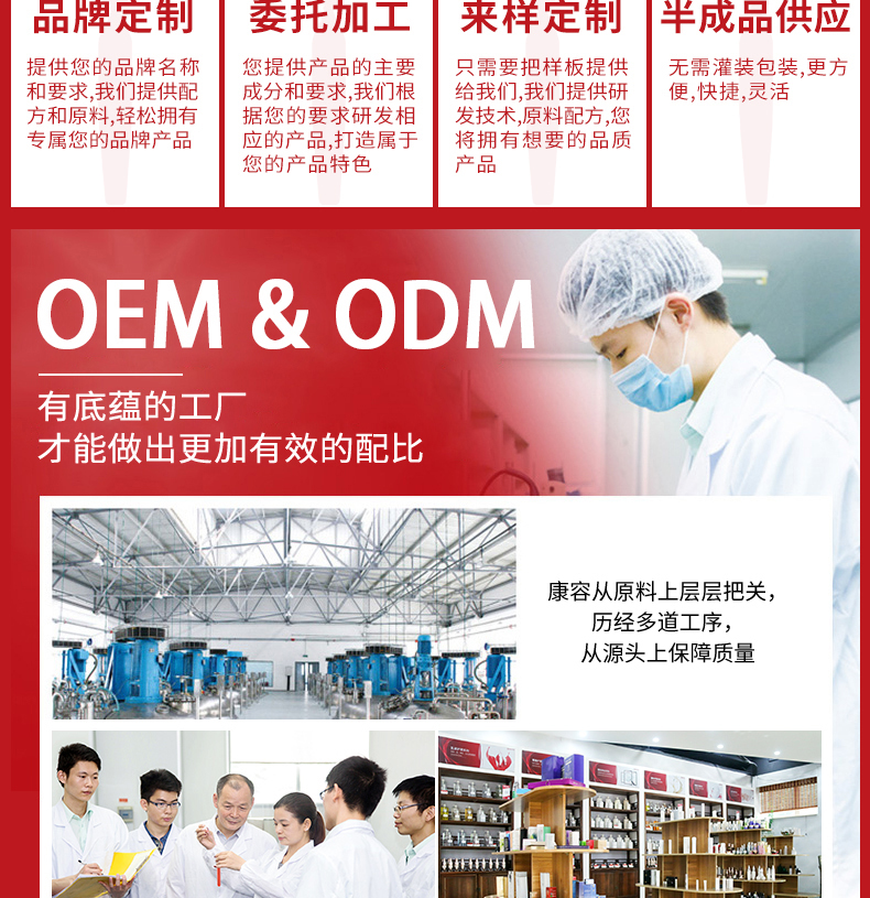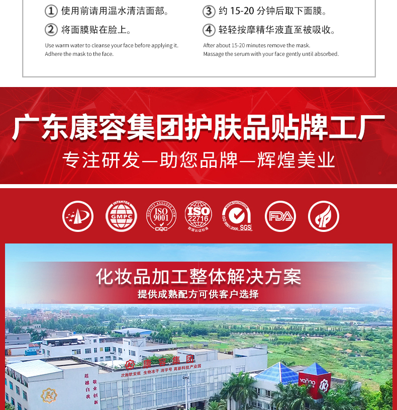 咨詢熱線:13802777831 工廠地址:廣州市白云區江高鎮神山工業園振中北路 63 號 主營業務: 化妝品 oem / 化妝品加工 / 護膚品代加工 / 面膜加工 / 次拋原液代加工 / 凍干粉加工 / 嬰童系列加工 / 套盒系列加工等