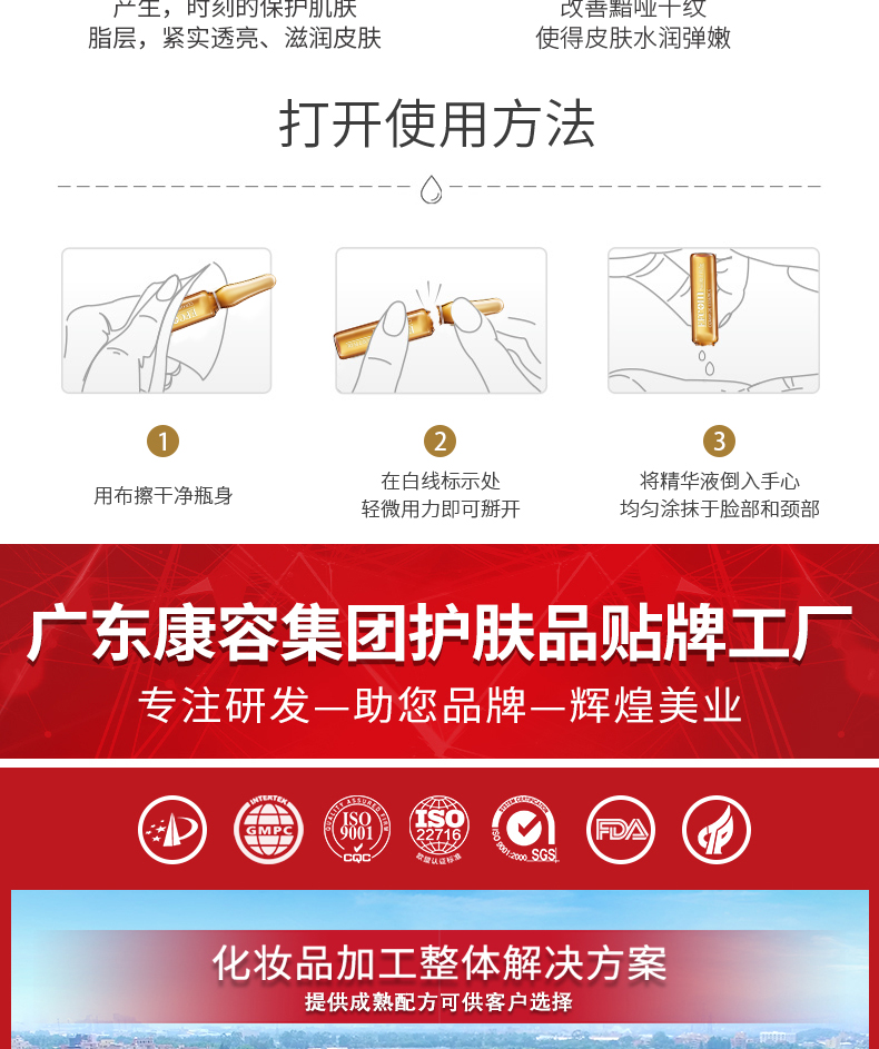 安瓶是一種氮氣密封包裝,內(nèi)含精華,它可以讓肌膚在短時間內(nèi)達(dá)到肌膚理想的狀態(tài),密集修護(hù)肌膚。