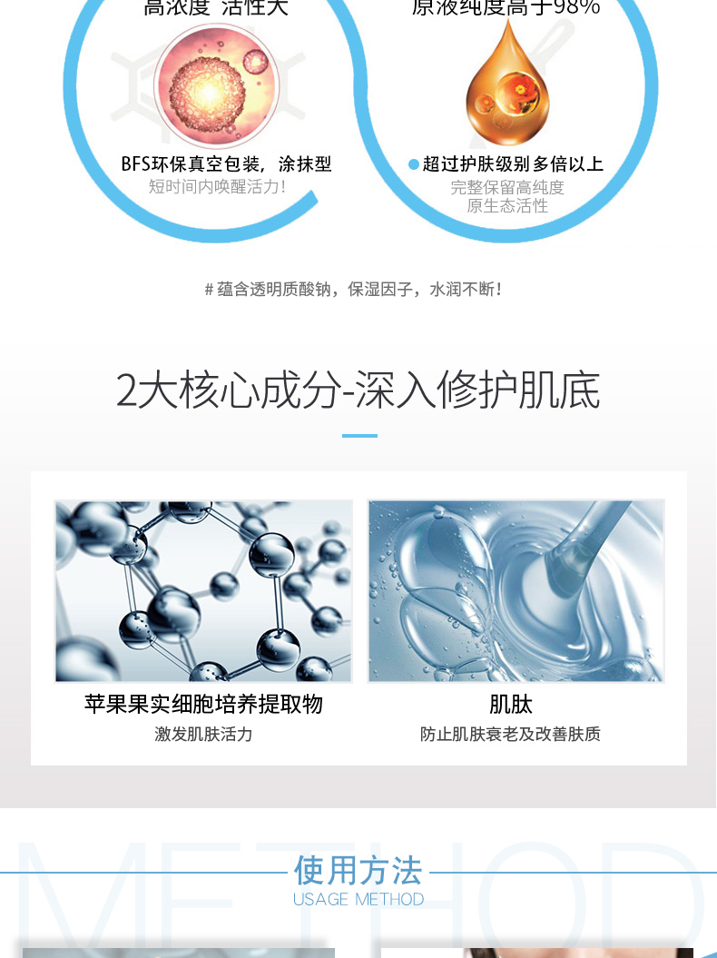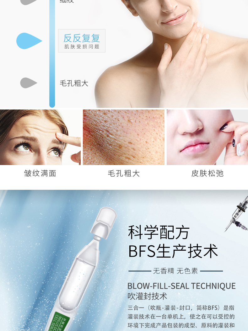 ⑥舒適安心:可替代注射美容、電波拉皮等傳統(tǒng)美容項目,成分直達肌膚底層,更加精準(zhǔn)有效 重新喚醒肌膚活力。