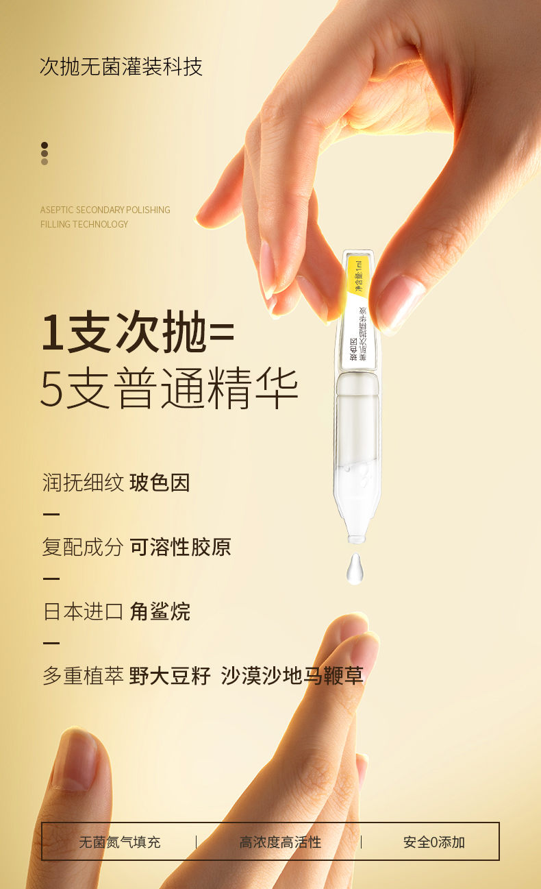 B.F.S技術將“吹、灌、封”三合一,1秒密封,防污染級別高,可以最大限度地避免操作人員對無菌生產的干擾,有效避免微生物及金屬離子對原液的污染;真空包裝無需添加防腐劑,一支一次的用量,一次一支,避免二次污染,完全可以保證產品沒有任何防腐劑添加,并且真正地做到了終端滅菌。