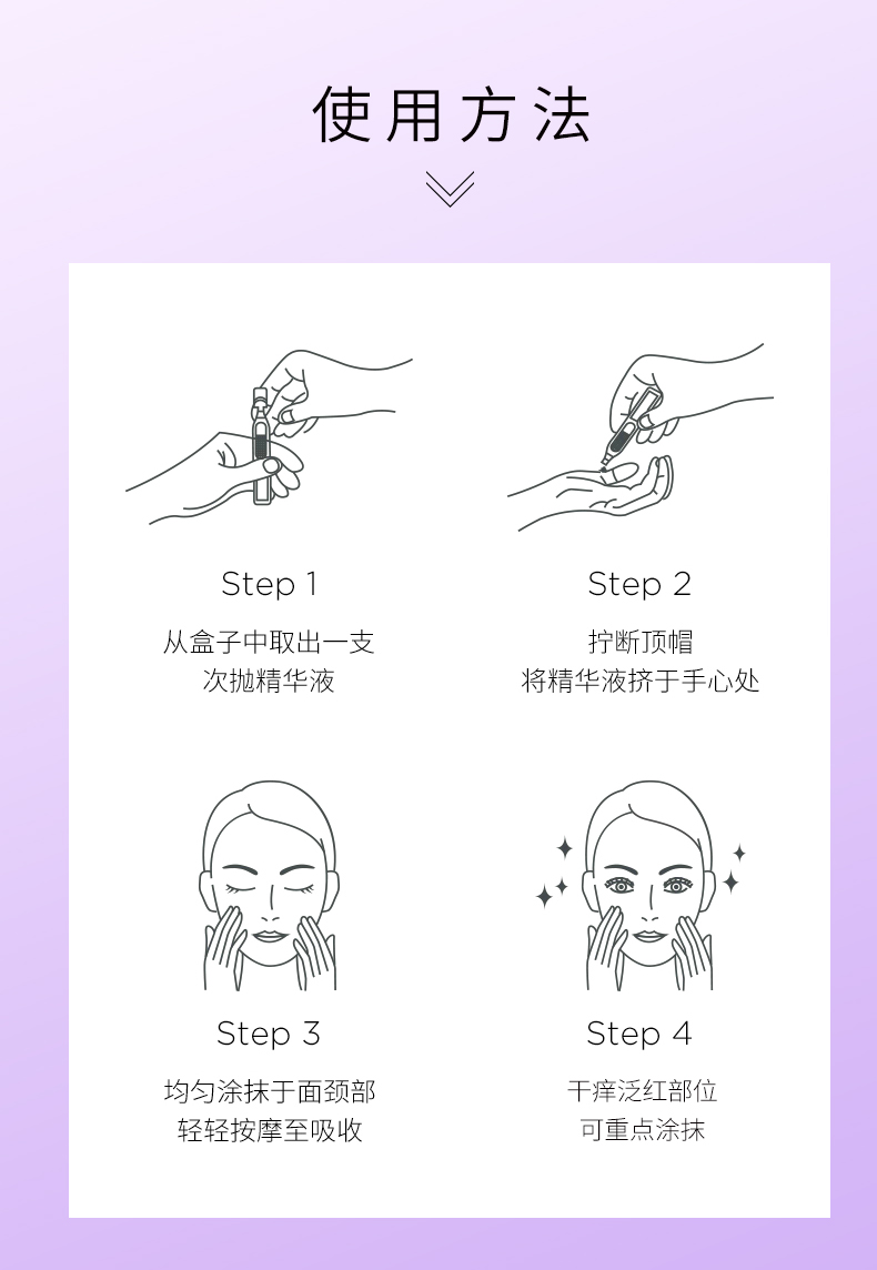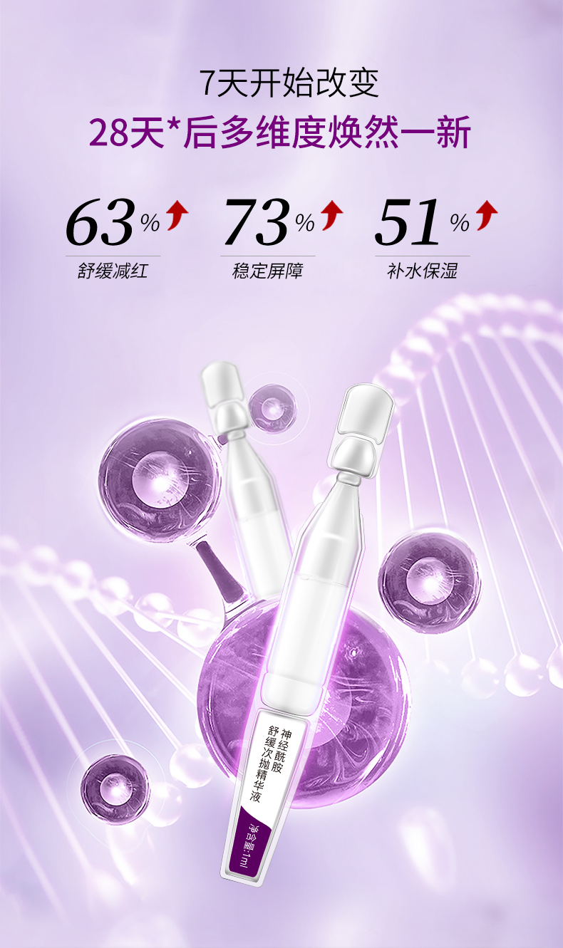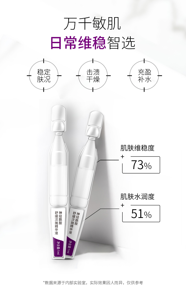 產(chǎn)品功效特點: 1.建立舒緩保濕矩陣 馬齒筧預(yù)防肌膚干燥老化,增加皮膚舒適度+透明質(zhì)酸硬核補水保濕 2、靶向狙擊敏感脆弱問題 肌肽抗氧化,抗自由基,抗炎 3.深筑肌膚防線 神經(jīng)酰胺NP修補脂質(zhì),肌膚基層健康 4.強韌肌膚屏障力 寡肽-1 修護(hù)受損肌膚