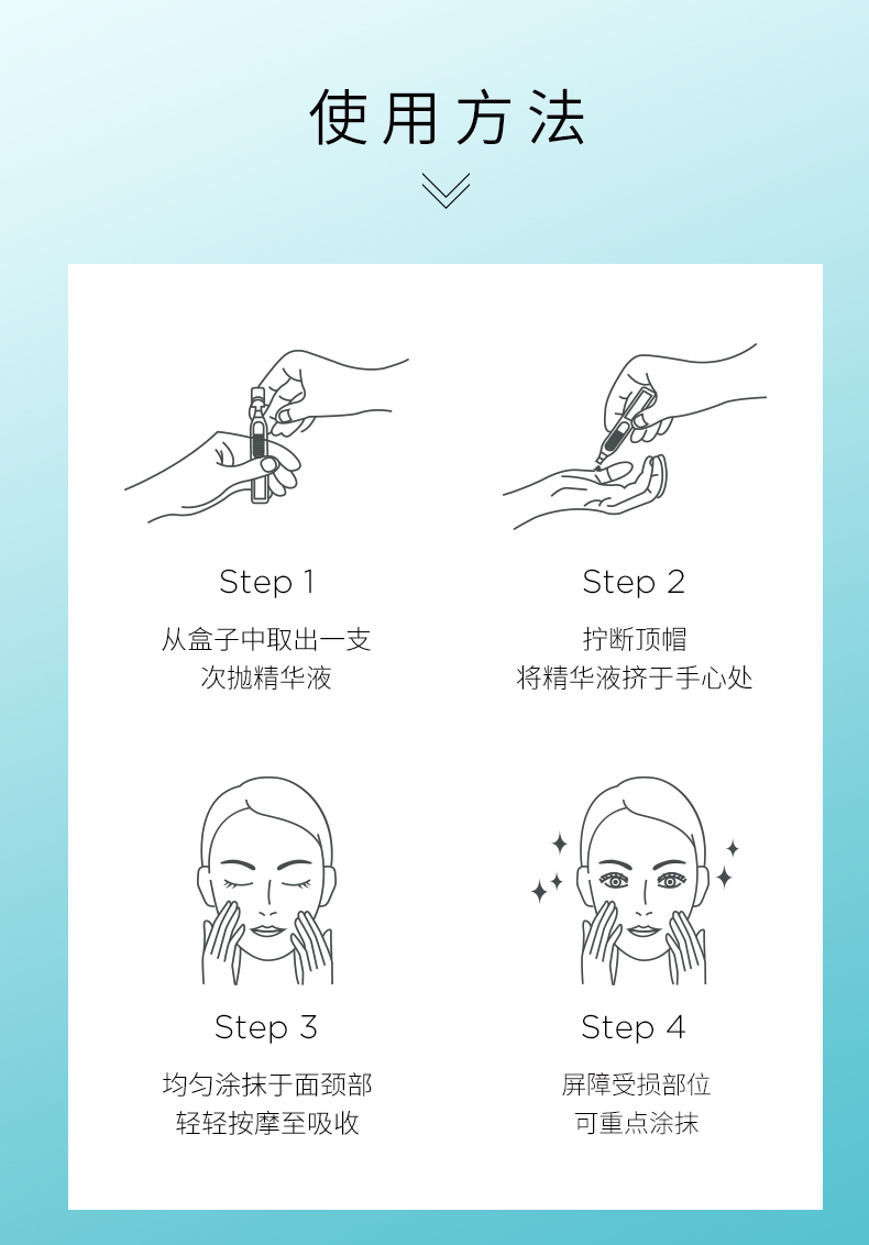 A:此款精華專為脆弱肌膚研發,修護能力強大。可以為肌膚建立保護機制,增強肌膚防護力,增強屏障修復力,全面為過敏期保駕護航。